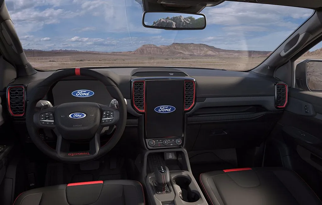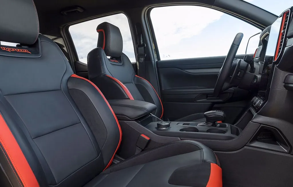 El habitáculo de la Ranger Raptor combina la comodidad con la tecnología de vanguardia. En el centro del tablero, una pantalla táctil de 12 pulgadas te da acceso al sistema de infoentretenimiento, compatible con las últimas funciones de conectividad. Para los amantes de la música, el sistema de sonido B&O de 10 bocinas ofrece una experiencia acústica de alta fidelidad. Cada detalle tecnológico ha sido pensado para hacer tu viaje más conectado, placentero e intuitivo.
